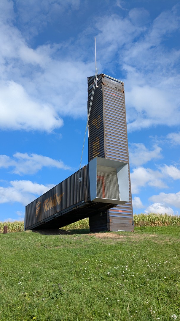 První zastávku jsme si udělali v místní hasičské stanici, kde se konal den otevřených dveří. Dominantou byl hasičský vůz, do kterého jsme si všichni vlezli, prozkoumali jsme, co k čemu je, a malá Laura si z prohlídky odnesla balonek. Naše další kroky směřovaly na vyhlídku nazvanou VýhledNa. Ta je složená ze dvou obřích vyřazených lodních kontejnerů, které několikrát obepluly svět. Stavba je to zajímavá, vnitřní schodiště pohodové a bezpečné a vyhlídka na Litomyšl opravdu pěkná. V tento moment, někdy po poledni, příhodně naplno začalo svítit sluníčko a bylo tomu tak většinu času až do odjezdu.