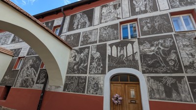 Směrem do historické části města jsme se zastavili u památníku Jana Amose Komenského, který má podobu zeměkoule o průměru 2,5 metru a zdobí jej alegorické výjevy připomínající jeho život a dílo. Památník se nachází v parku před litomyšlskou střední pedagogickou školou a nedaleko je k vidění Smetanův dům, secesní divadelní budova z roku 1905. Odtud už je to jen kousek na Smetanovo náměstí, kde na jednom konci samozřejmě nechybí skladatelova socha a na druhém pak Mariánský (morový) sloup zdobený sochami sv. Václava, sv. Jana Nepomuckého a Panny Marie. Náměstí je to velké a dlouhé, lemované řadou měšťanských domů s podloubími. Než jsme ho prošli celé, přiblížil se pomalu čas oběda.
